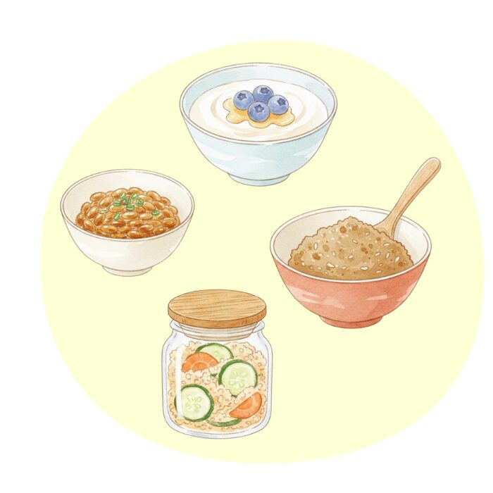 ヨーグルト、納豆、味噌、ぬか漬けなど、身近な発酵食品は腸活の味方。善玉菌を増やして腸内環境を整えることで、セロトニンの分泌をサポートします。