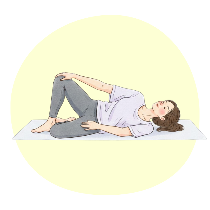 - ひねりストレッチ: 仰向けに寝て、片膝を反対側に倒し、上半身をゆっくりとひねります。お腹の奥が伸びて、腸の動きが活発に。