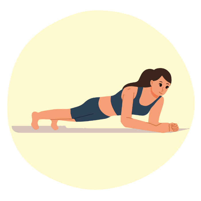 腕立て伏せの姿勢で肘を床につけ、背中から足までをまっすぐに保つ「プランク」。