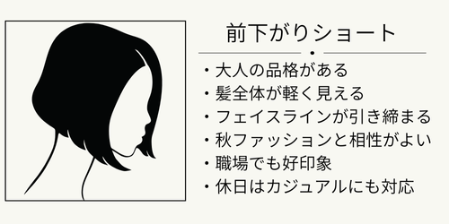 丸みショートなら柔らかい雰囲気を強調し、ハンサムショートならシャープな秋ファッションと好相性。シンプルな服でも髪型が映えるため、全身の印象が洗練されて見えます。