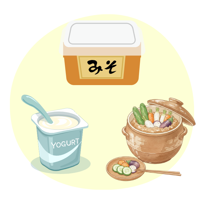 ヨーグルトや味噌、ぬか漬けなどの発酵食品を毎日少しずつ取り入れるのがおすすめです。