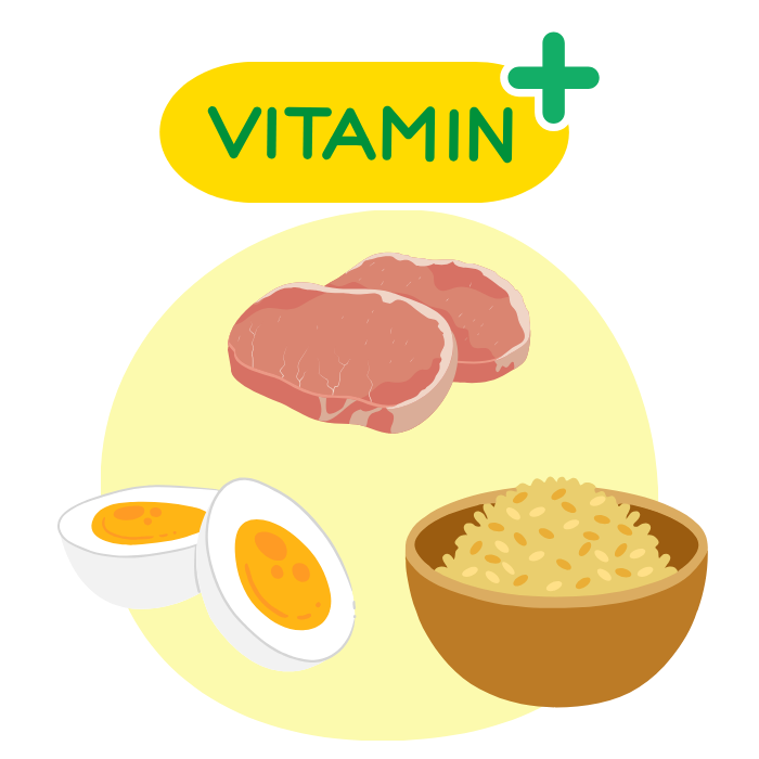 豚肉、卵、玄米などに多く含まれ、エネルギー代謝をスムーズにしてくれます。