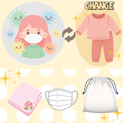 園や学校から帰ってきた服には、目に見えない汚れやウイルスが付着している可能性があります。帰宅後はなるべく早く着替え、外着と部屋着を分けるだけでも安心感が違います。