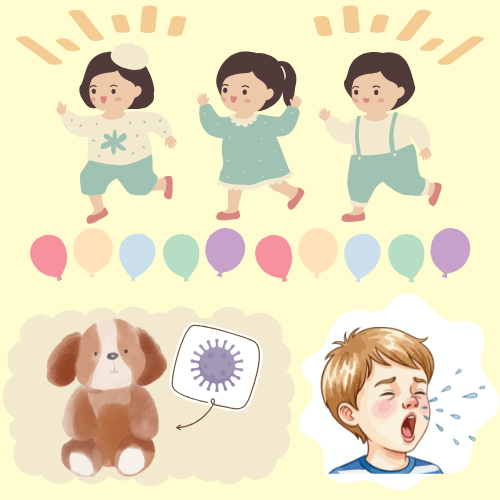 保育園や学校は、多くの子どもが長時間同じ空間で過ごします。子ども同士の距離が近く、遊びや学習を通して同じ物に触れる機会も多いため、ウイルスが広がりやすい環境です。さらに、子どもは体調の変化をうまく言葉にできなかったり、咳やくしゃみのマナーがまだ十分でなかったりすることもあります。