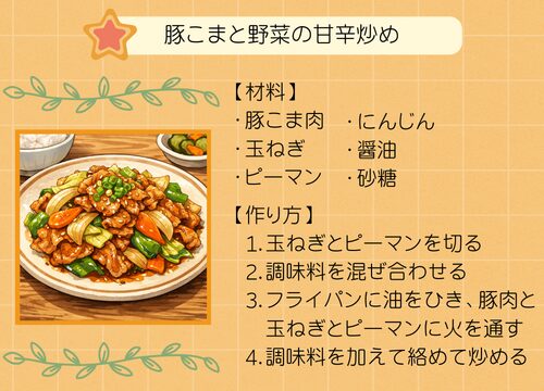 フライパン一つで完成。ご飯が進む味で、子どもにも人気です。