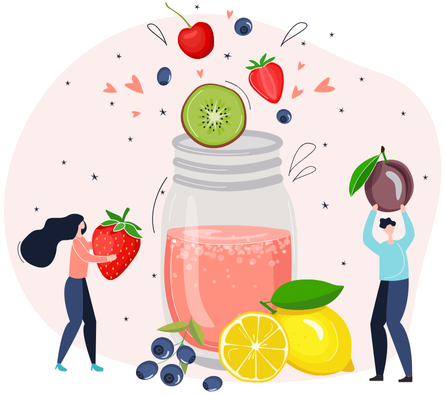 まず、清潔な瓶を用意し、瓶の中に梅やレモンなどの果実を入れます。