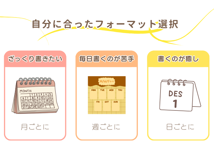手帳は種類が豊富。毎日書くのが苦手な人はウィークリーページを、予定をざっくり管理したい人はマンスリーページを活用するとストレスなく続けられます。