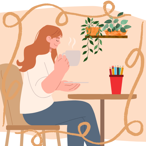 お気に入りのマグカップにハーブティーを淹れたり、ほんのり甘いおやつを添えたりして“おうちカフェ”気分でぬり絵を楽しむのもおすすめ。