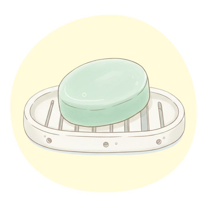 使ったあとは水分を切り、できるだけ乾いた場所に置くのが長持ちのコツ。ソープディッシュや専用ケースを使えば、溶けにくく清潔に保てます。忙しい日常の中でも、ちょっとした工夫で長く使えますよ。