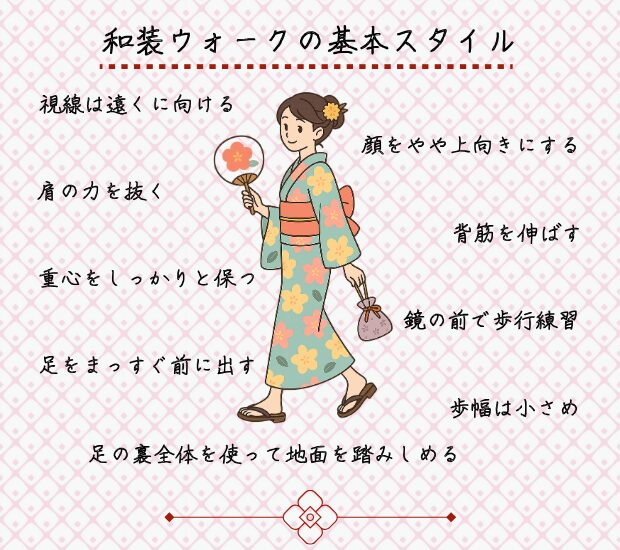 和装ウォークの基本ステップは、浴衣姿を美しく見せるために重要です。