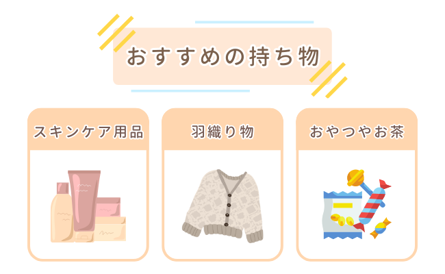 温泉のお湯は肌に優しいことが多いですが、いつもと違う環境なので肌が乾燥しやすいことも。普段使い慣れているスキンケアアイテムを持参すると安心です。