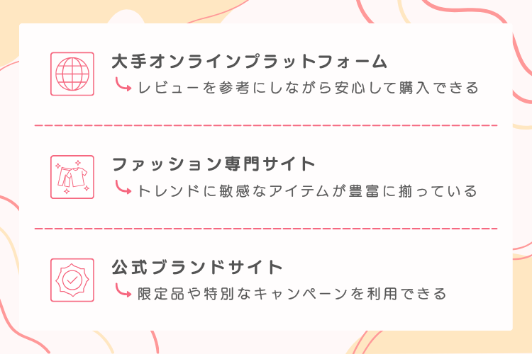 また、ZOZOTOWNやマガシークなどのファッション専門サイトでは、トレンドに敏感なアイテムが豊富に揃っており、40代ママにぴったりなデザインも見つかるでしょう。