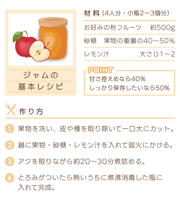 ぜひ今年の秋は、お気に入りの旬フルーツを使って、親子で手作りジャムやコンポートに挑戦してみてください。
