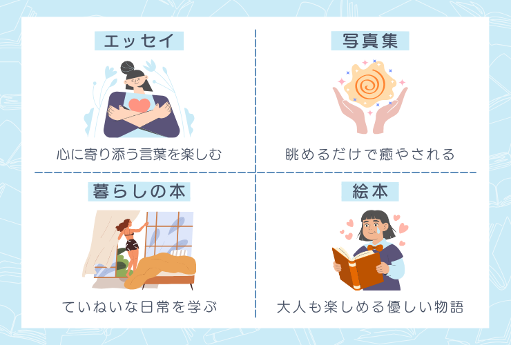 本の中に描かれる情景や言葉に触れるだけで、まるで森林浴をしているかのように気持ちが和らぐことも。