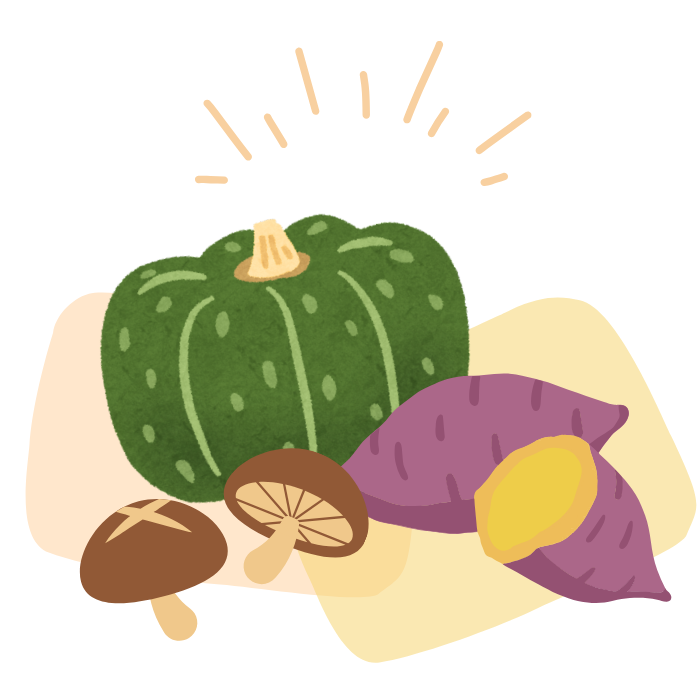 秋はかぼちゃやさつまいも、きのこ類など、栄養豊富で旬の食材が揃います。