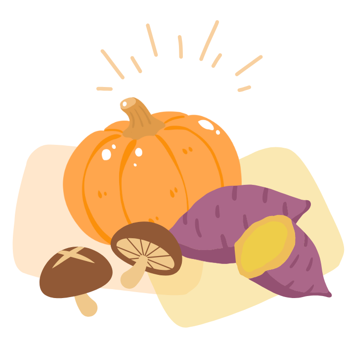 秋はかぼちゃやさつまいも、きのこ類など、栄養豊富で旬の食材が揃います。
