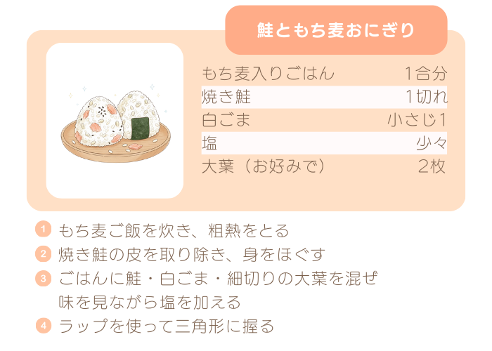 - 栄養満点「鮭ともち麦おにぎり」