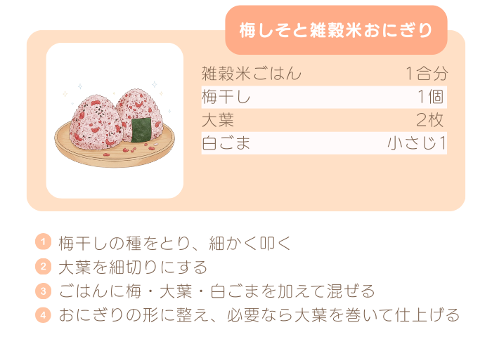- 彩り鮮やか「梅しそと雑穀米おにぎり」