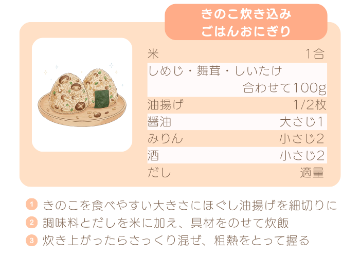 - 秋の味覚「きのこ炊き込みごはんおにぎり」
