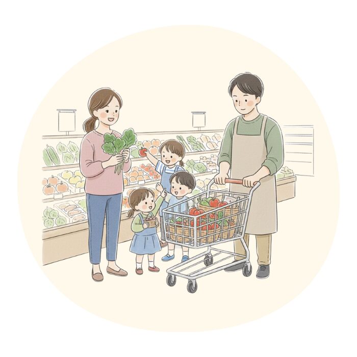 子どもや夫にも“食材を選ぶ体験”をしてもらうことで、食費への意識が自然と高まります。