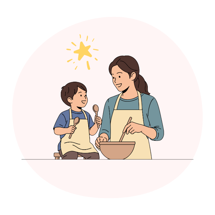 洗濯物をたたむ、料理を手伝ってもらうなど、家事を「お手伝い」ではなく「一緒にやる時間」にします。完璧を求めず、「やってくれたらOK」と考えることで、ママの負担も減ります。