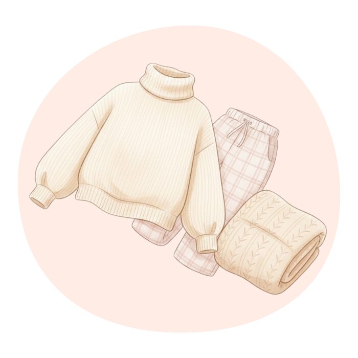 冬は特に冷えが厳しくなる季節。厚手のフリースやウール素材で、しっかりと体を覆うルームウェアが重宝します。特に首元・手首・足首などの“3つの首”を温めると体感温度がぐっと上がるため、ハイネックや裾リブタイプのデザインがおすすめ。インナーに吸湿発熱素材を重ねれば、一日中あたたかく過ごせます。