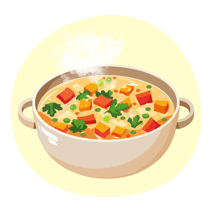冷たいサラダよりも、温野菜やスープを取り入れるのが温活ごはんのコツ。