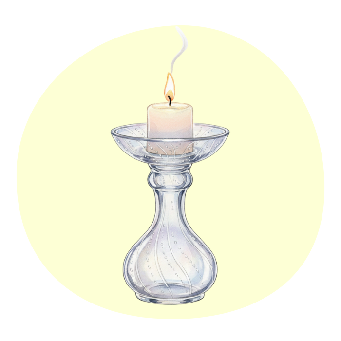 キャンドルを灯すときは、耐熱性のホルダーを使うのが基本。ガラスや陶器のホルダーを選ぶと、光の反射が柔らかく広がり、より幻想的な雰囲気を楽しめます。