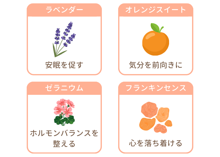 - フランキンセンス:深い呼吸を促し、心を落ち着ける