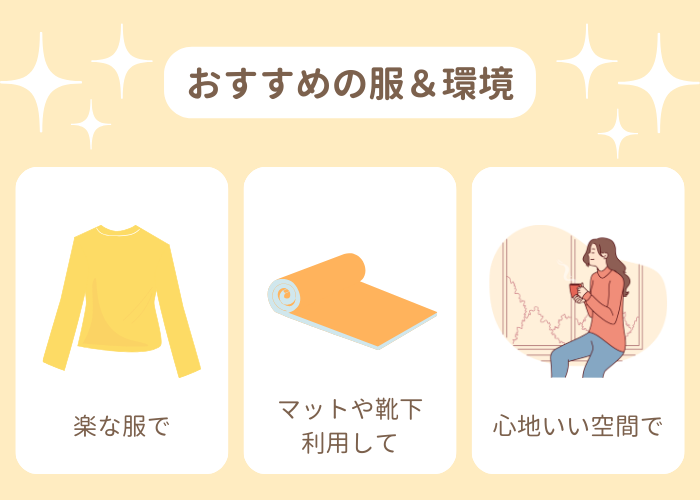 毎日続けるコツは、完璧を目指さず「気持ちよく体を動かせる範囲」を優先すること。体が重い日や疲れが溜まっている日は、ポーズを浅くしてもOKです。