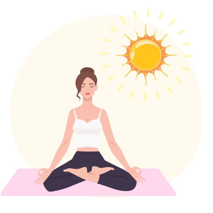太陽礼拝は、朝に行うと特に効果的。眠っている間に冷えた体を優しく温めてくれるうえ、深い呼吸で自律神経を整え、心もスッキリと目覚めさせてくれます。