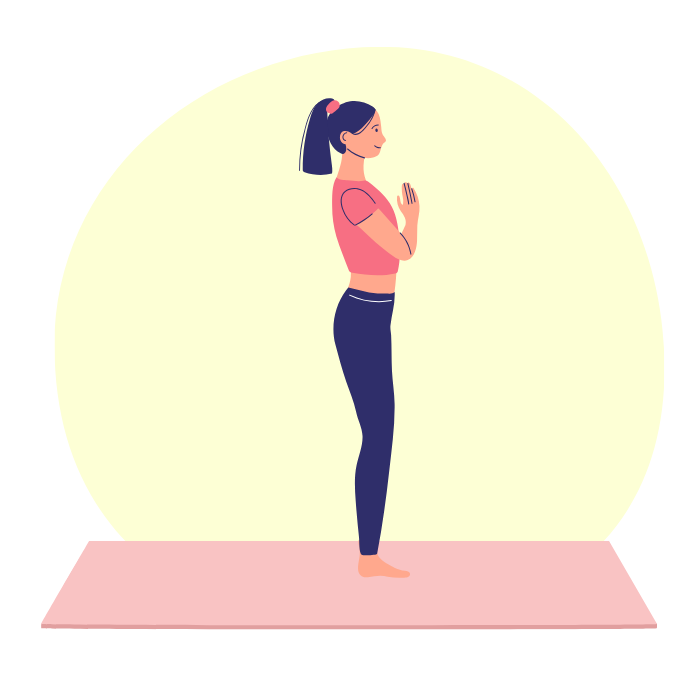 胸を開き、両手を胸の前で合わせて深呼吸。心を落ち着けて、自分の内側に意識を向けましょう。