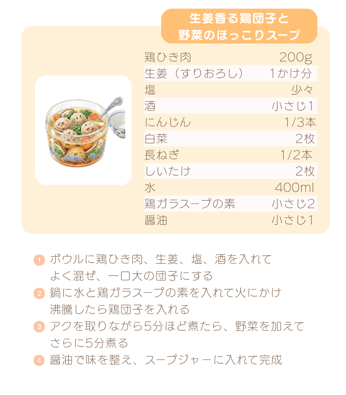 生姜香る鶏団子と野菜のほっこりスープ