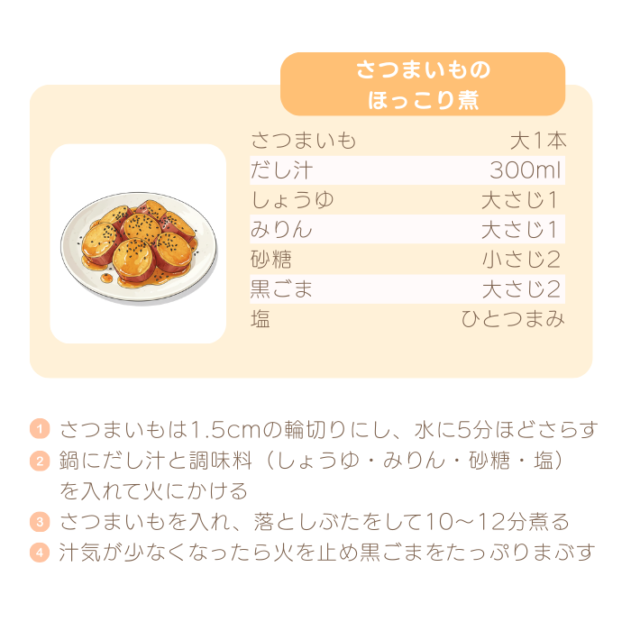 ② 黒ごまがアクセント*さつまいものほっこり煮(黒×オレンジ)