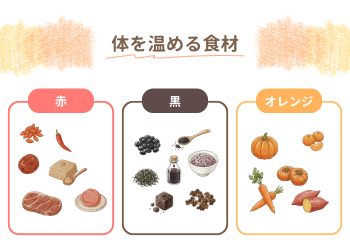 これらの食材は血行促進に役立つ成分を多く含み、体を中から温めてくれます。寒い季節は、毎日の食卓に少しずつ取り入れてみましょう。