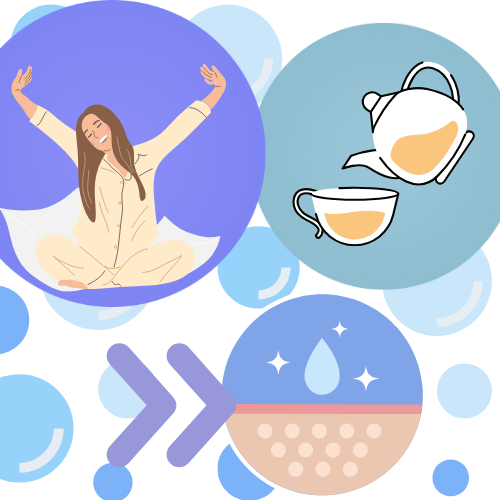 温活は睡眠と相性がとても良いもの。寝る前に軽いストレッチや、温かいハーブティーを飲むだけでも身体がリラックスし、深い眠りにつながります。質の良い睡眠は肌の再生を促すため、翌朝の肌のうるおい感にも違いが出ます。