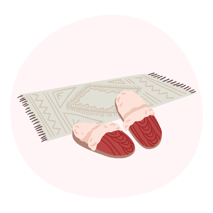玄関の印象は帰宅後の気持ちに直結します。もこもこスリッパやフワッとした玄関マットがあると、お家の中に一歩入っただけで温かさと安心感に包まれます。