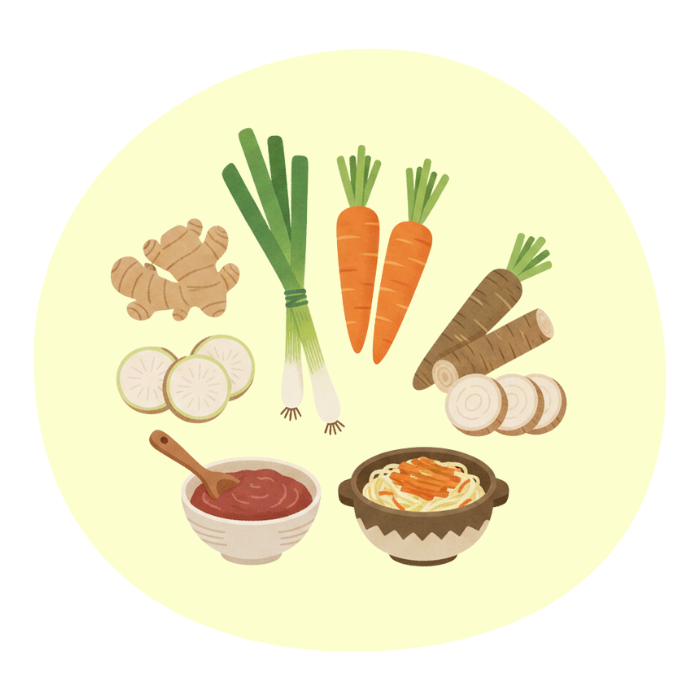 生姜、ネギ、根菜類、味噌、発酵食品など、身体を温める食材を“いつもの献立に1つ足す”だけでOK。無理に特別なメニューを作る必要はありません。