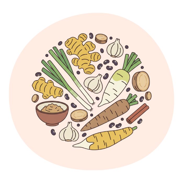 生姜、ねぎ、にんにく、根菜、味噌、黒豆、シナモンなど、体を温める食材は日常に取り入れやすく、料理の味も深まります。
