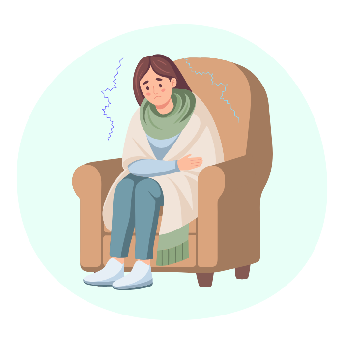 腹巻き、カイロ、レッグウォーマーなどを活用し、「冷える前に温める」ことがポイントです。